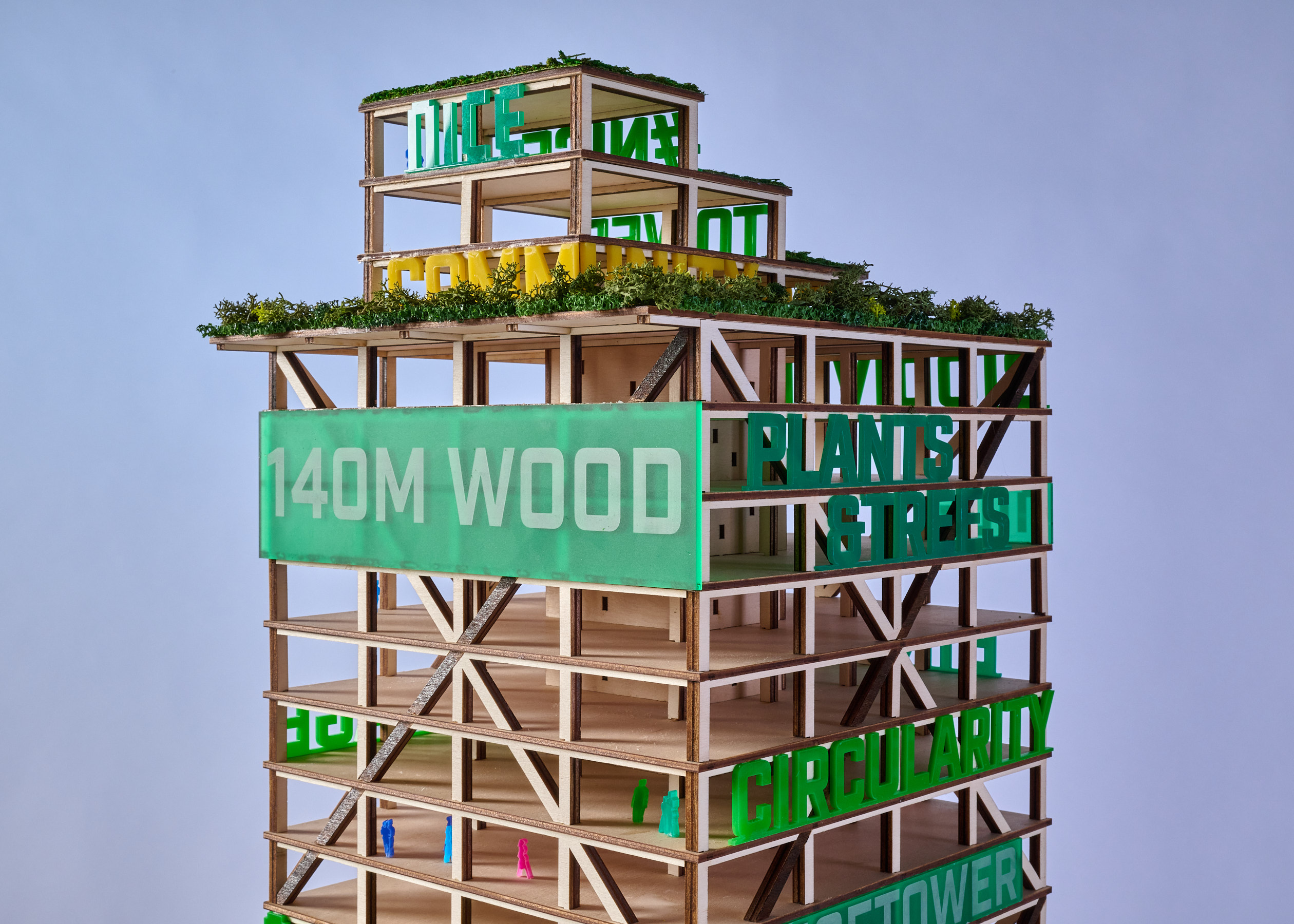 Een studie naar Paris Proof woongebouw in hout tot 100 meter hoog! Nieuwbouw 70 tot 100 meter hoog Wonen (sociaal, middenhuur en vrije sector) + werken + voorzieningen