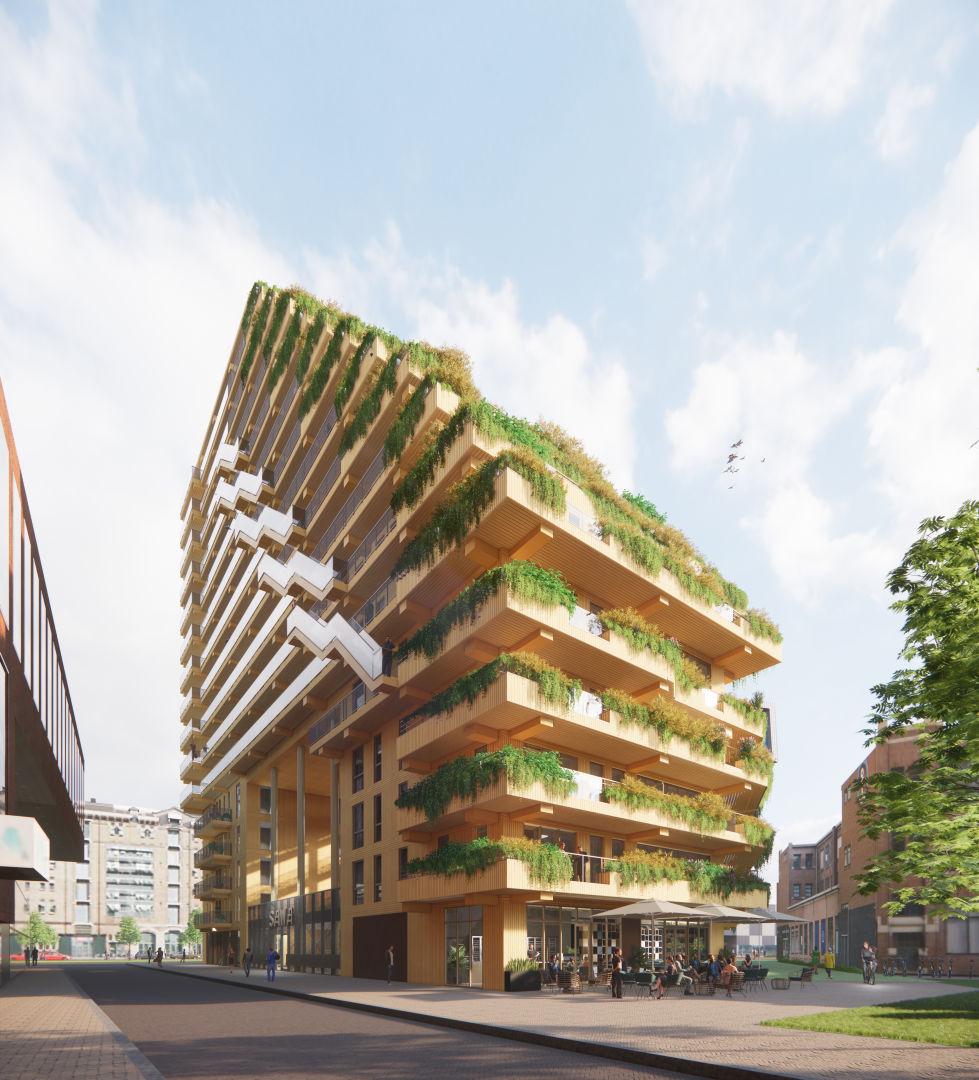 Met een hoogte van 140 meter, een baanbrekende prestatie, bewijst NICE dat duurzaam, innovatief en sociaal bouwen op deze schaal mogelijk is. De NICE Tower tilt houtbouw naar een geheel nieuw niveau en toont aan dat houtbouw tot ongekende hoogtes kan stijgen.