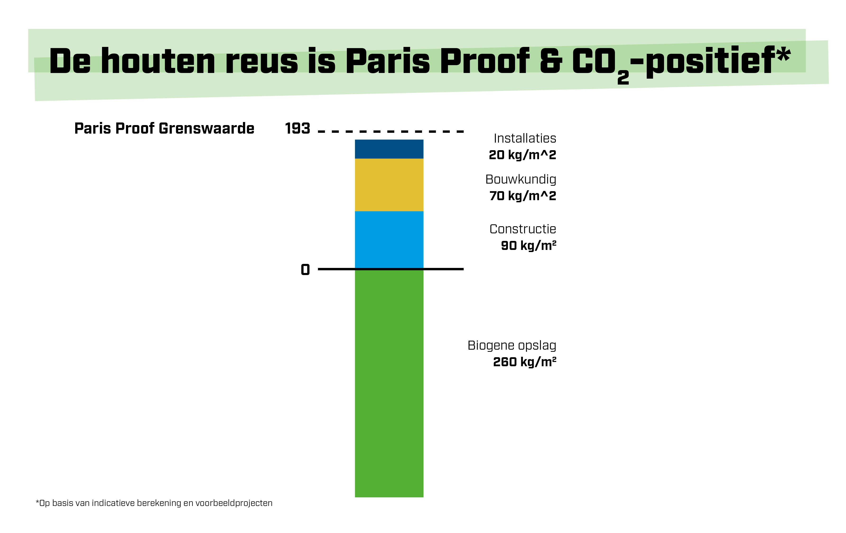 Om de klimaatdoelen te halen moeten er drastische stappen worden gemaakt. Gemiddeld stoot een betonnen toren 450 kg CO2 per m² uit. Voor 2030 moeten we deze uitstoot terugdringen naar 139 kg CO2 per m². De NICE Tower kan deze ambitieuze norm bereiken.